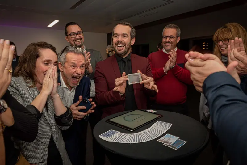 Ayant fait appel à Adrien pour une opération VIP pour notre entreprise, je peux que confirmer l’excellence de son intervention ! Nos clients ont été ravis, surpris, perplexes, déroutés, parfois positivement agacés par ses tours incompréhensibles mais bluffant. En résumé : un public charmé et un client ravi de la disponibilité et de la personnalisation de la prestation. Merci Adrien et son équipe d’avoir contribué à la réussite notre soirée entreprise.